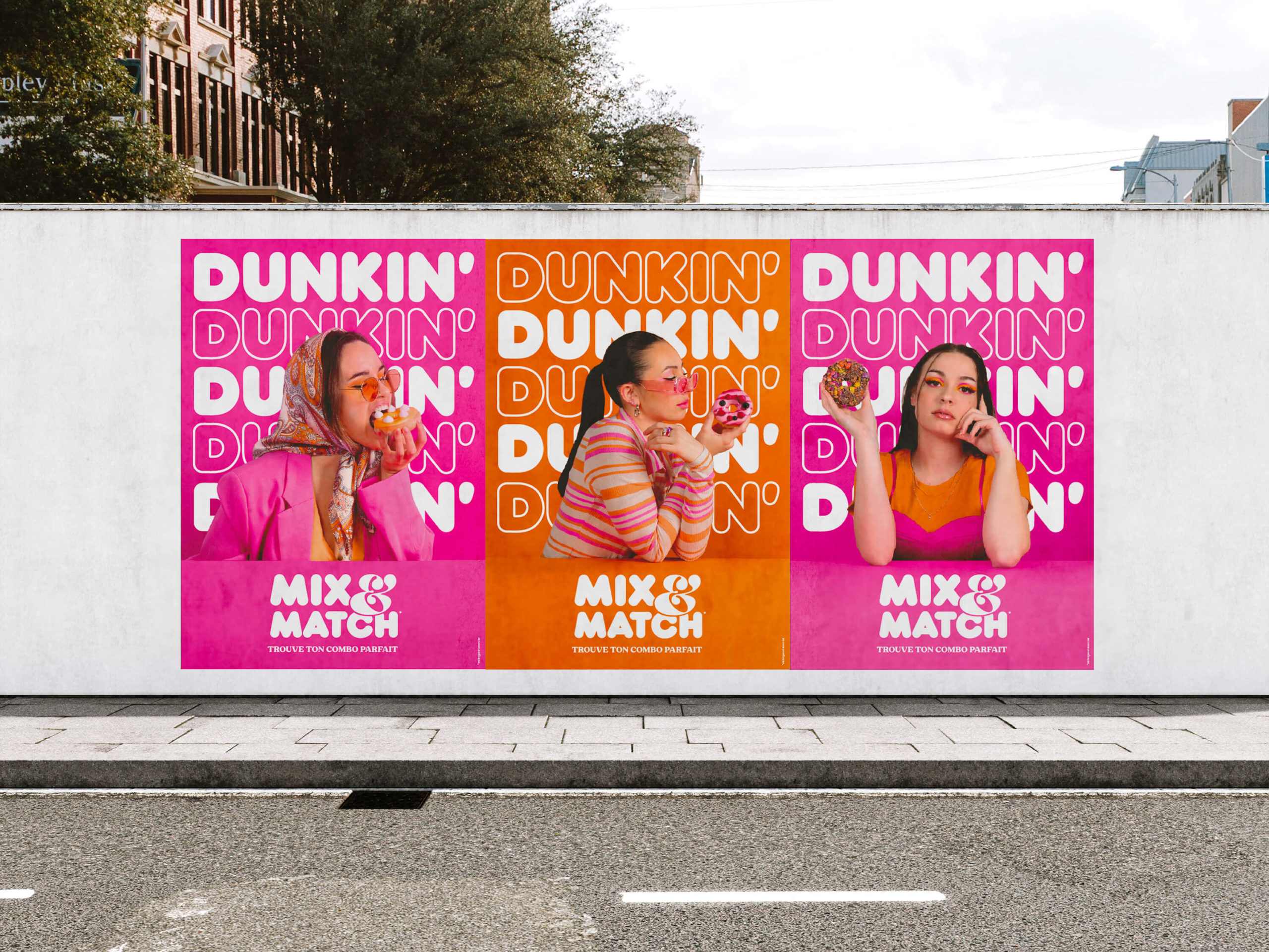 Dans le cadre du concours « Les Éclairs Créatifs » organisé par le collectif Ciel, nous avons imaginé une campagne publicitaire pour l'arrivée de DUNKIN’ en France. Colorée, généreuse et pop, la marque doit séduire un public français exigeant. Notre concept : mêler les codes américains de DUNKIN’ à l’univers français de la mode, avec une campagne inspirée d’une fashion week où tenues et donuts se combinent façon "Mix & Match". Accompagnée d’une campagne d’activation sur les réseaux sociaux grâce à un challenge, cette campagne a pour but de créer d’attirer l’œil des français vers la marque américaine.